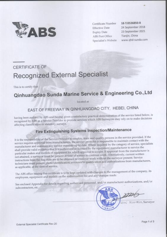 秦皇島順達(dá)船務(wù)有限公司位于美麗的海濱城市、中國(guó)北方著名的能源輸出大港--秦皇島。公司從事于船舶修理、物料供應(yīng)、水下檢測(cè)、船體測(cè)厚、消防救生設(shè)備及救生艇檢驗(yàn)、電氣自動(dòng)化修理等服務(wù)。 公司自1997年成立至今,先后為國(guó)內(nèi)外船東修理、檢驗(yàn)各類船舶萬(wàn)余艘,積累了豐富的施工經(jīng)驗(yàn)。公司現(xiàn)有場(chǎng)地100余畝,員工30余人,以及工程用車若干臺(tái)。我們公司一直本著嚴(yán)以律己、真誠(chéng)待人、精益求精、信譽(yù)至上的經(jīng)營(yíng)理念,以優(yōu)質(zhì)的服務(wù)、專業(yè)的施工、合理的收費(fèi),得到了國(guó)內(nèi)外船東的廣泛認(rèn)可,贏得了良好的口碑和信譽(yù)。 公司已取得了中國(guó)船級(jí)社(CCS)、美國(guó)船級(jí)社(ABS)、日本船級(jí)社(NK)、德國(guó)船級(jí)社(DNV GL)等各個(gè)船級(jí)社的消防救生和救生艇檢驗(yàn)資質(zhì), ...